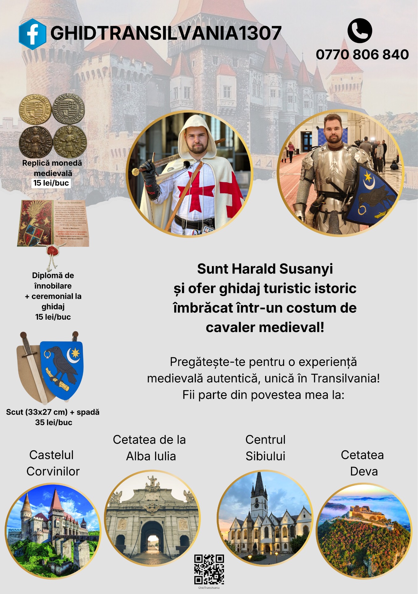 Vă invit la o călătorie de neuitat prin Transilvania alături de un ghid costumat într-un cavaler templier! Așa este, ați citit bine. Pe parcursul ghidajului mă voi prezenta în fața dvs îmbrăcat într-un cavaler templier pentru a crea o atmosferă istorică deosebită.